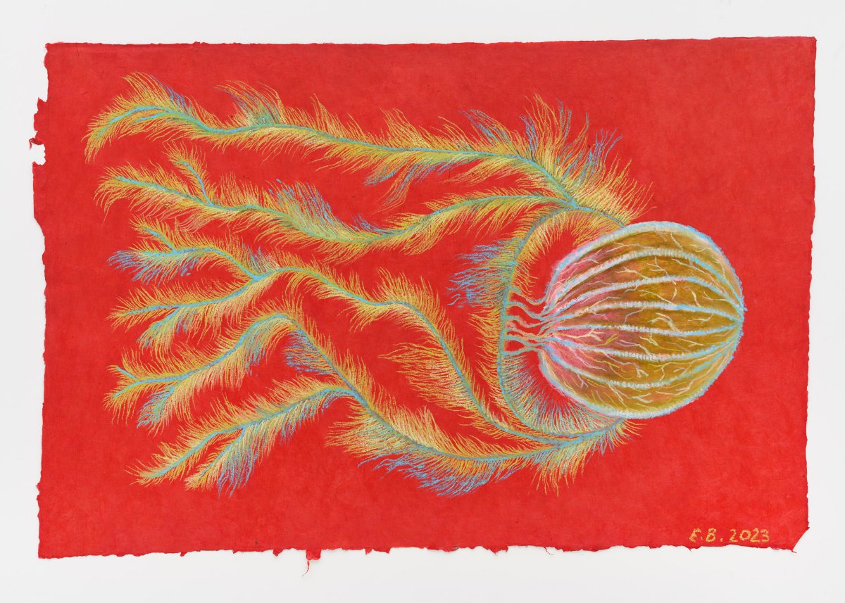 Vernisáž výstavy. Výstava Divný bytosti představuje cyklus imaginativních kreseb Eriky Bornové, v nichž se divák noří do světa, který je současně krásný i lehce znepokojivý. Autorka zde obrací svou pozornost k životu skrytému v hlubinách oceánů – k organismům, jejichž tvary a struktury jsou pro lidské oko téměř neviditelné, a přesto fascinující svou složitostí i křehkostí. Bornová se volně inspiruje rostlinami a těly bezobratlých vodních živočichů, které existují na hranici viditelnosti – v temnotě moří, v mikroskopickém měřítku, v prostorech, kam lidská zkušenost dosahuje jen zprostředkovaně. Podivuhodné struktury podmořských organismů se v jejích obrazech proměňují v jakýsi snový přírodopis, v němž se prolíná vědecké pozorování s imaginací a volným výtvarným gestem. Tvary se větví, pulsují, rozrůstají se do jemných ornamentů, a působí téměř jako živé. Technika akrylu a olejového pastelu na papíře umožňuje autorce pracovat s tlumenými, měkkými barevnými polohami. Díla tak působí, jako bychom je pozorovali skrze vodní sloupec, v rozptýleném světle, které do hlubin proniká jen v náznacích. Barvy se zde neprosazují silou, ale tichým zářením, jaké známe z podmořských krajin – z míst, kde se světlo mění v chvění a tvar v pomalý pohyb. Cyklus Divný bytosti lze číst také jako citlivou reakci na současnost. V době, kdy se svět stále více přesouvá do digitálních struktur a umělých obrazů, obrací Bornová pozornost k přírodě – k jejímu tajemství, nepředvídatelnosti a nekonečné variabilitě. Pohybujeme se zde mezi krásou a neklidem, mezi poznáním a tajemstvím, mezi tím, co lze pojmenovat, a tím, co lze pouze vnímat. A právě v této nejisté, proměnlivé zóně se rodí zvláštní, podmanivá poetika.
