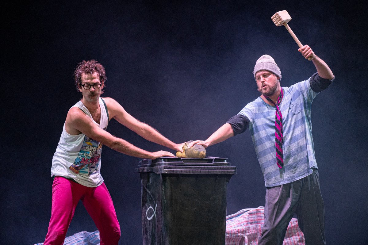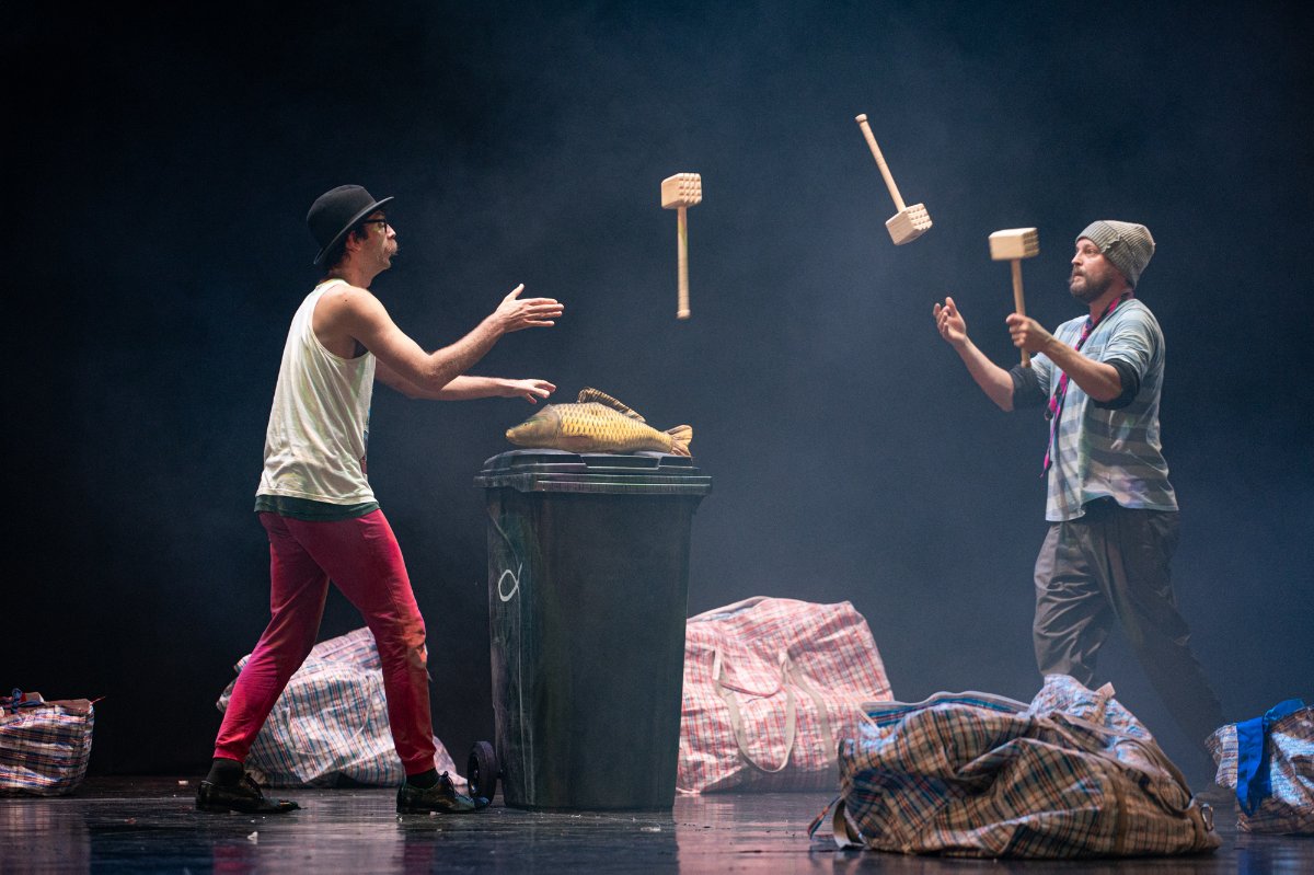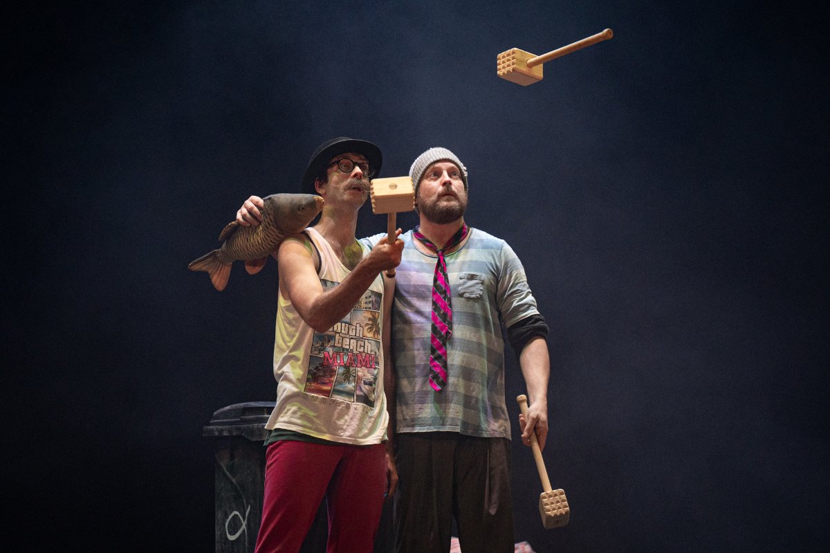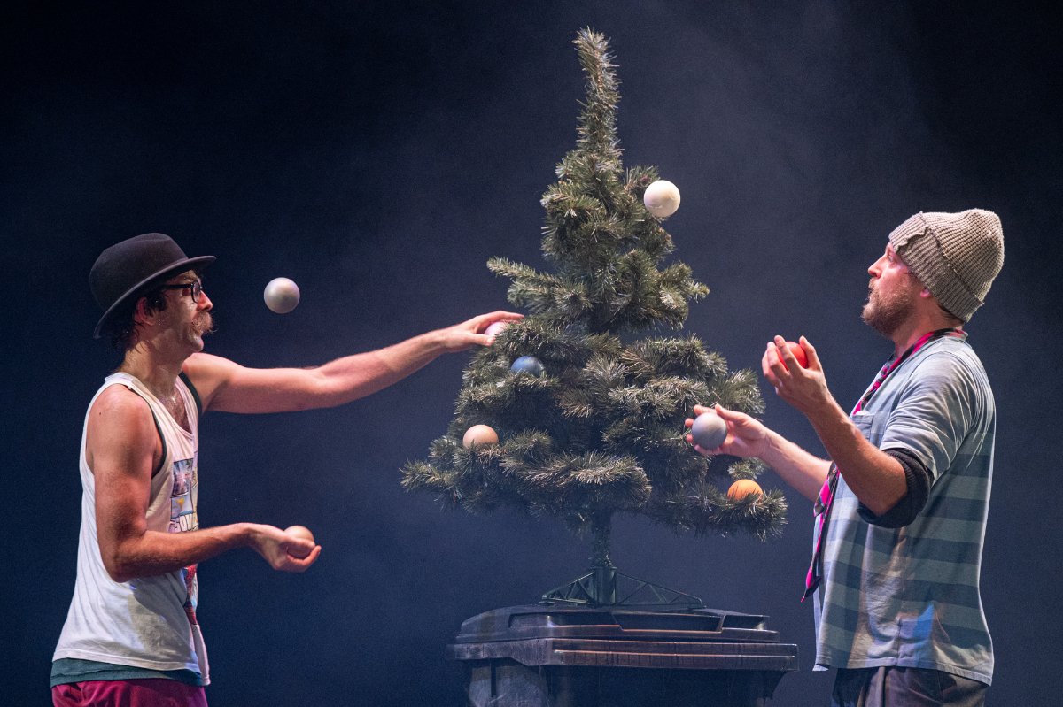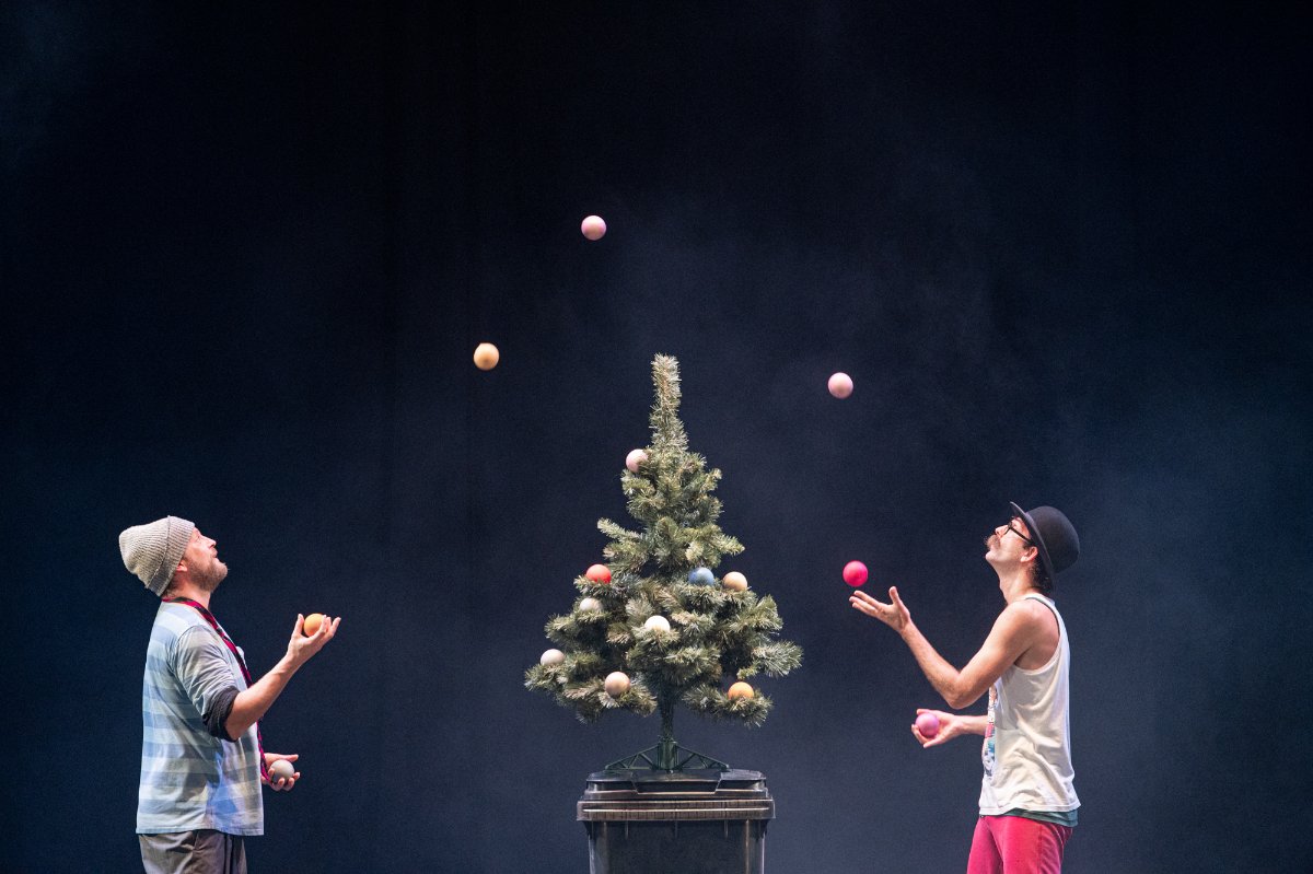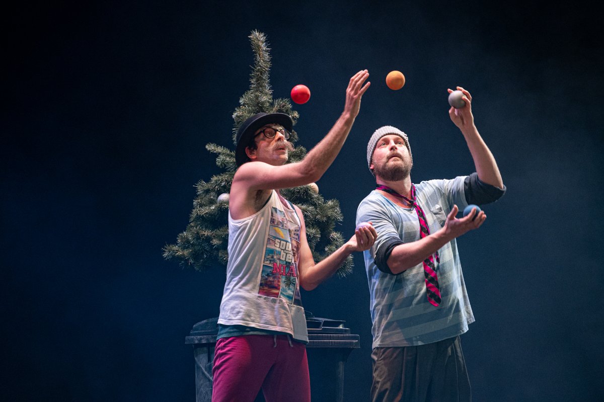 Vánoční groteska s prvky absurdity. Dva bezdomovci na ulici, dva pastýři na cestě do Betléma, dva Bratři v tricku, k tomu vytříbená žonglérská technika, humor a nadsázka, značná dávka absurdity i špetka vánoční nostalgie. Ke kouzlu Vánoc už schází jen popelnice, hromada tašek a … KAPR! Nedílnou součástí inscenace je i hudba, která perfektně dotváří atmosféru, někdy vánočně dojemnou a nostalgickou, jindy zase podtrhující absurditu scén. Dva klauni vinšují štěstí, zdraví a požehnané Vánoce, kdy zázrak zrození umí proměnit beznaděj a samotu v naději a souznění.